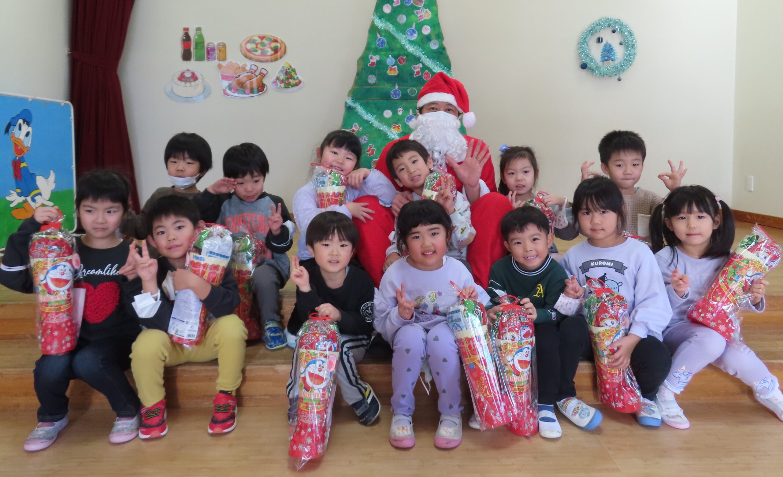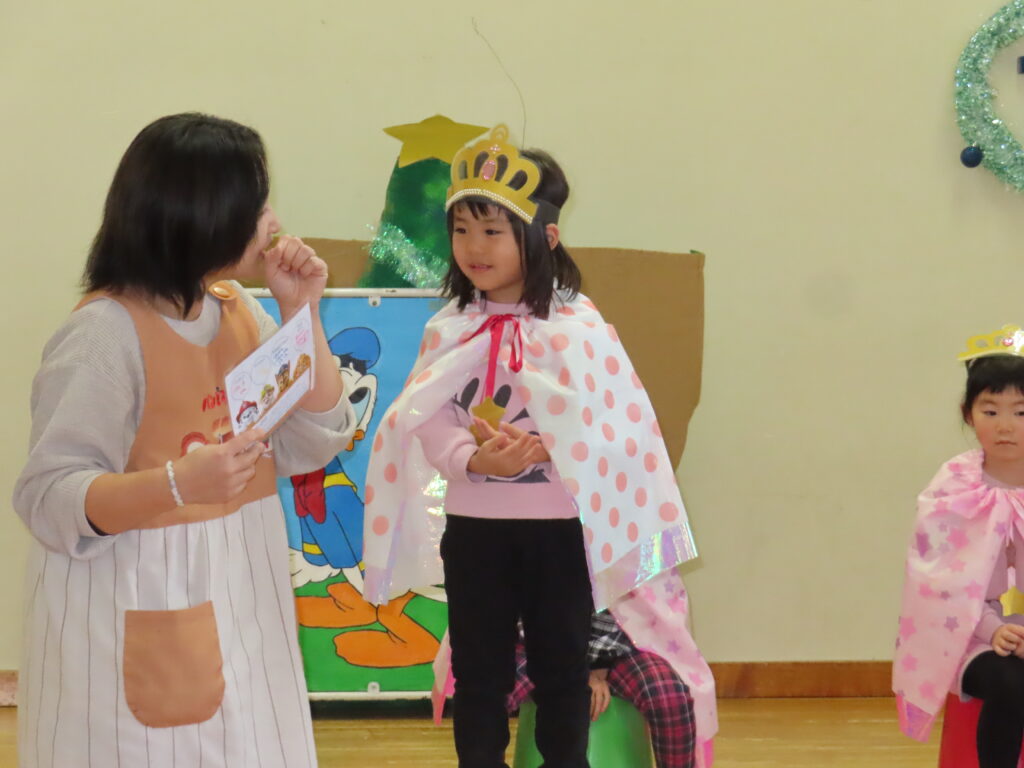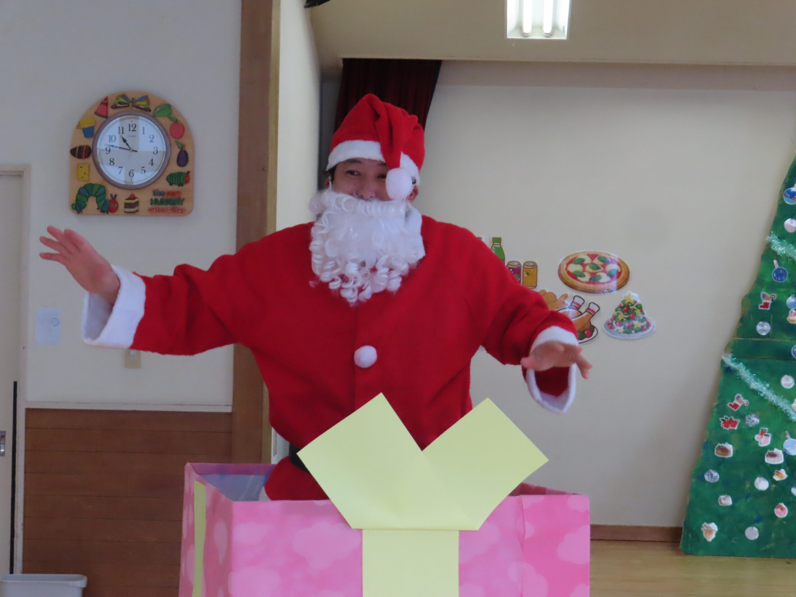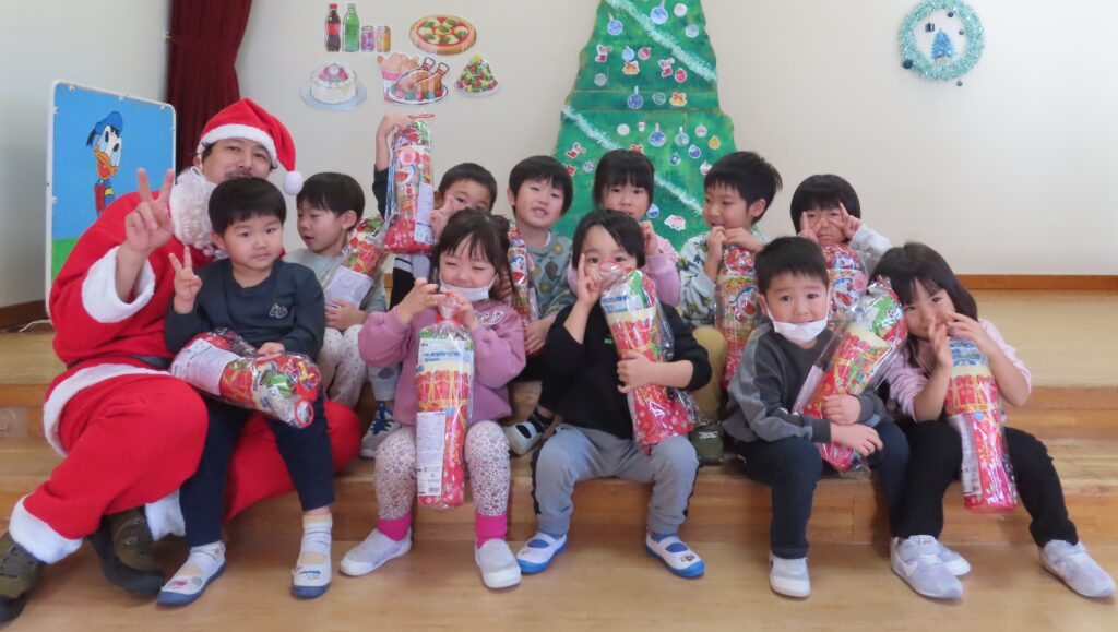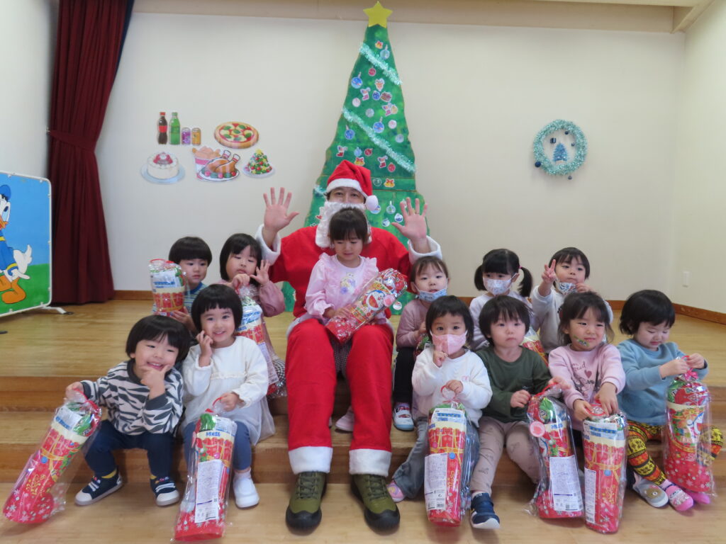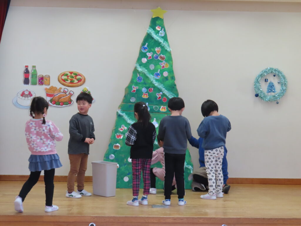 クリスマス誕生会 2025年12月29日 クリスマスの飾りを釣って・・・ クリスマスツリーの完成! サンタさん登場! ☆メリークリスマス☆ ひまわりレストランオープン♪ 今日のメニューはチキンライス、ほうれん草のソテー、もみの木ハンバーグ、ポテト、オニオンスープ、ヤクルトです。 View all posts by 先生ときわ Categories: 今日のトピックス