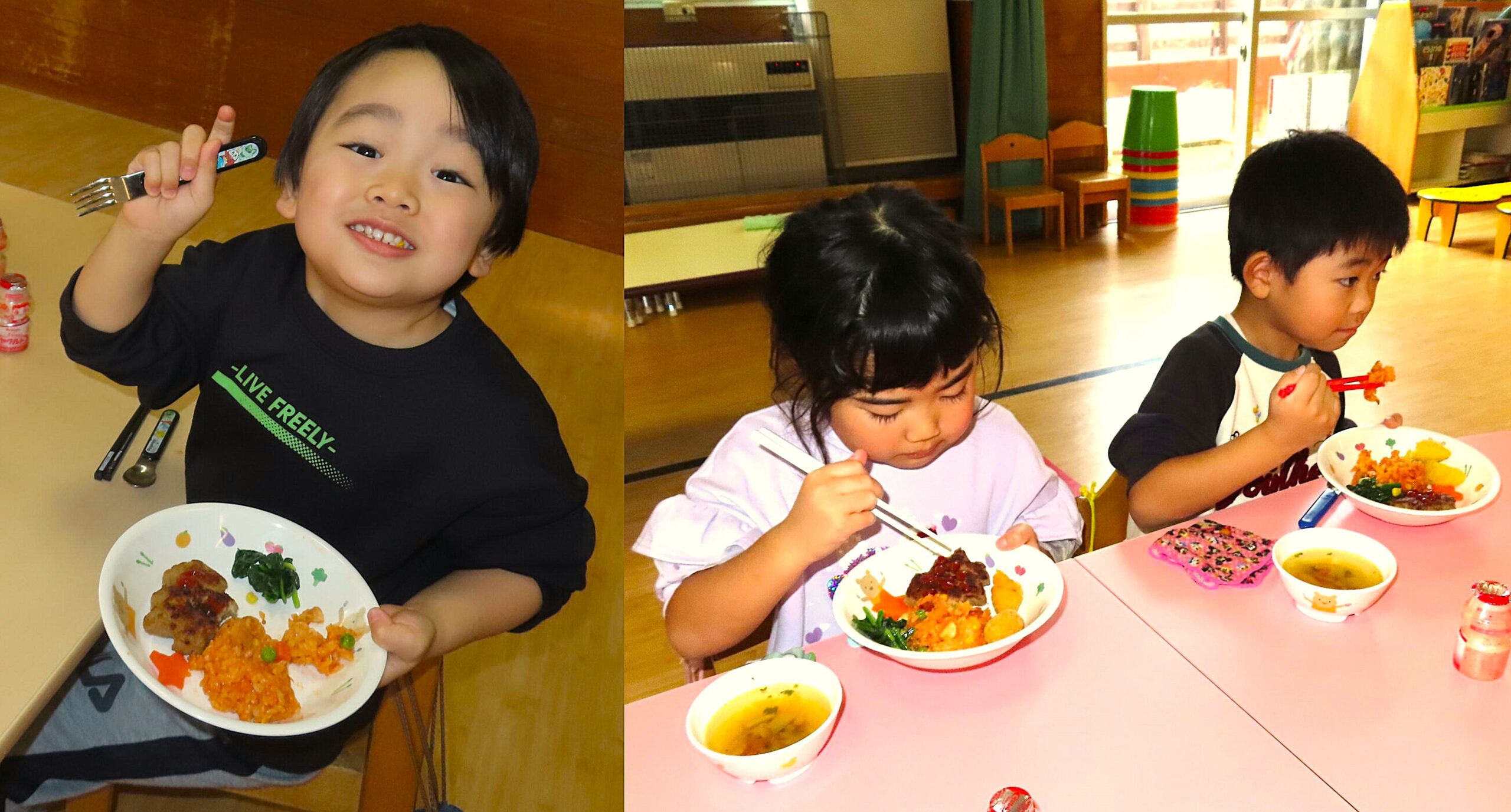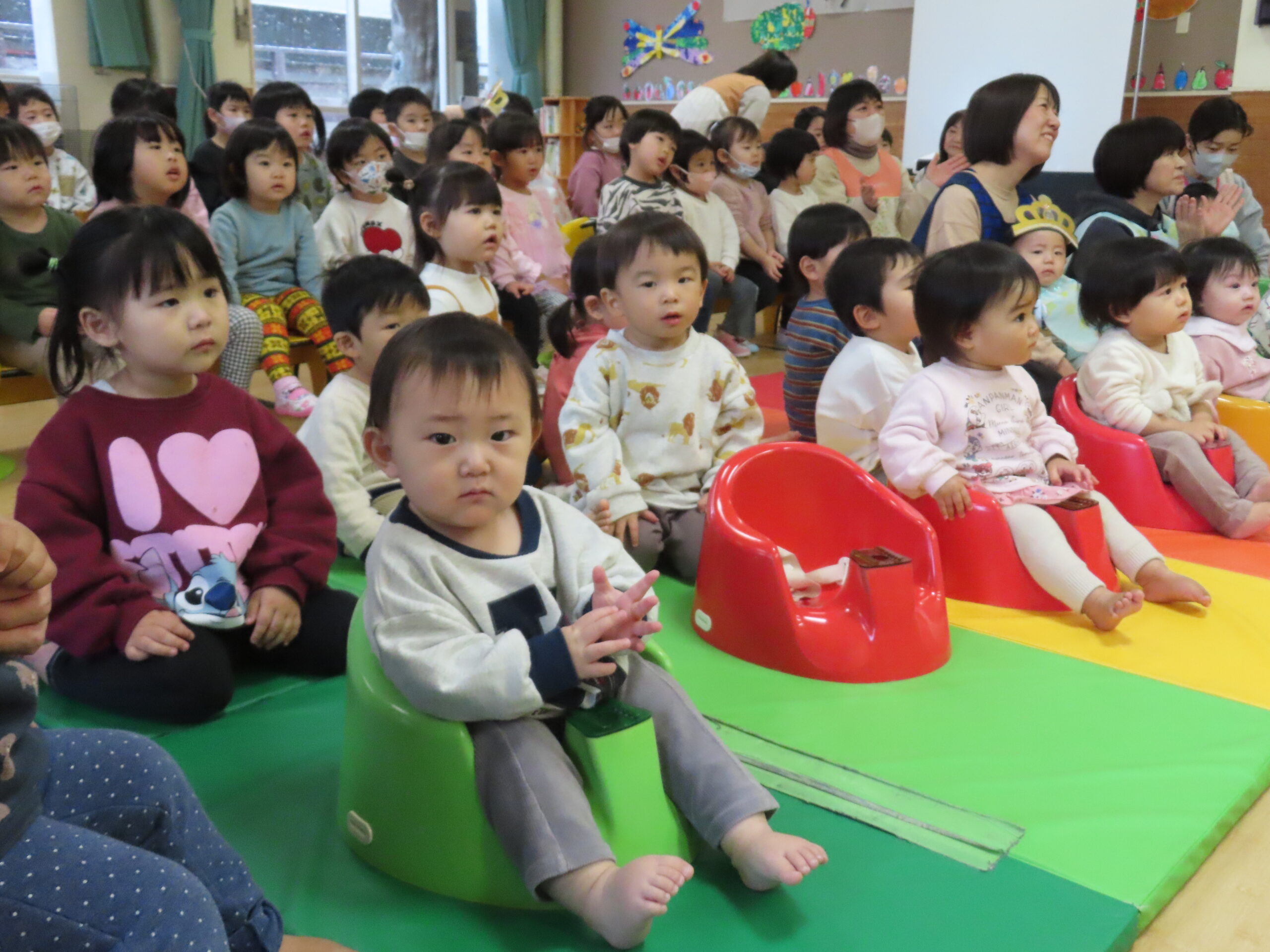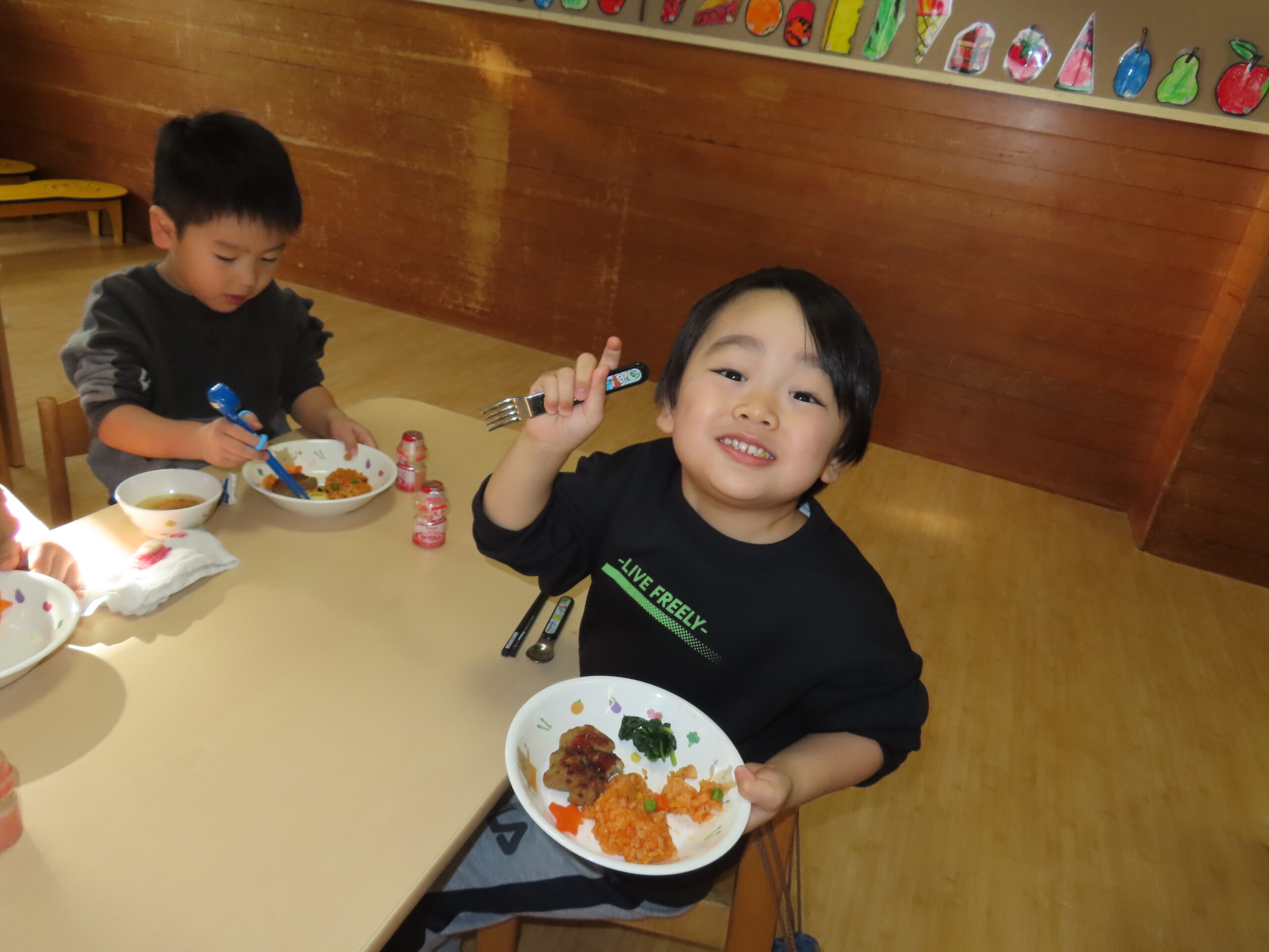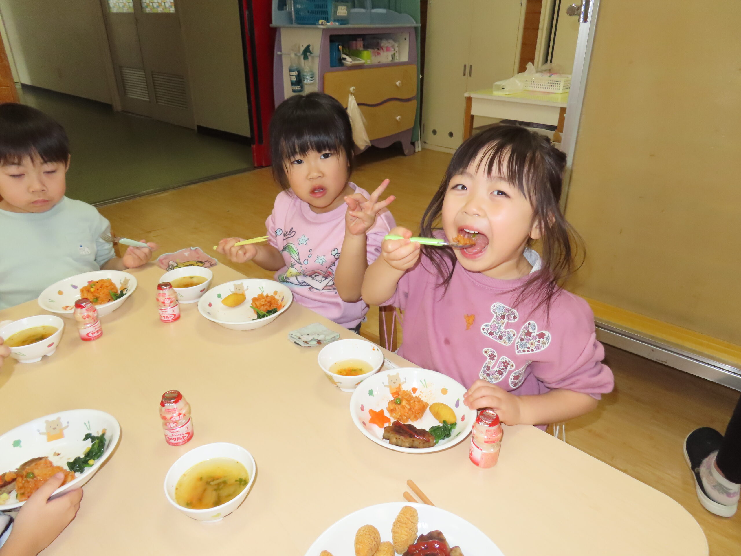 クリスマス誕生会 2025年12月29日 クリスマスの飾りを釣って・・・ クリスマスツリーの完成! サンタさん登場! ☆メリークリスマス☆ ひまわりレストランオープン♪ 今日のメニューはチキンライス、ほうれん草のソテー、もみの木ハンバーグ、ポテト、オニオンスープ、ヤクルトです。 View all posts by 先生ときわ Categories: 今日のトピックス